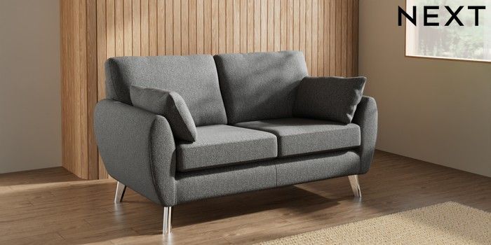 7.3.1 Buy Wilson 2 Seater Sofa Tweedy Chenille Dark Grey Metal Tapered - Chrome from the Next UK online shop