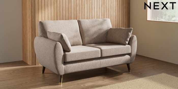 7.3.1 Buy Wilson 2 Seater Sofa Tweedy Chenille Mid Natural Low Retro Tapered Metal Cap - Mid from the Next UK online shop