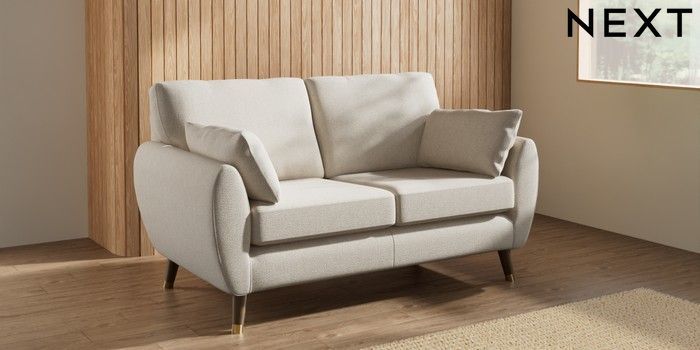 7.3.1 Buy Wilson 2 Seater Sofa Tweedy Chenille Oyster Low Retro Tapered Metal Cap - Mid from the Next UK online shop