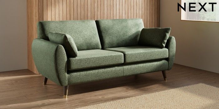 7.3.1 Buy Wilson 3 Seater Small Sofa Boucle Chenille Dark Moss Green Low Retro Tapered Metal Cap - Mid from the Next UK online shop