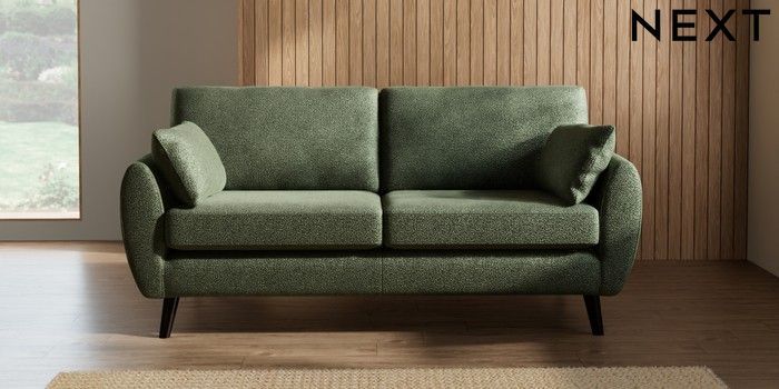 7.3.1 Buy Wilson 3 Seater Small Sofa Boucle Chenille Dark Moss Green Retro Tapered - Dark from the Next UK online shop
