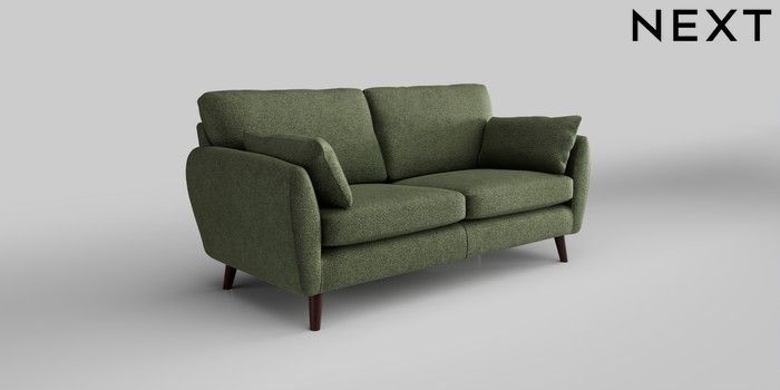 6.12.1 Buy Wilson 3 Seater Small Sofa Boucle Chenille Dark Moss Green Retro Tapered - Dark Brown from the Next UK online shop Click here to use our accessible website