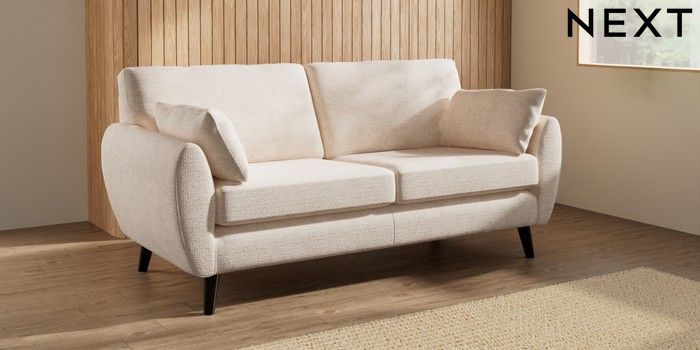 7.3.1 Buy Wilson 3 Seater Small Sofa Boucle Chenille Oyster Retro Tapered - Dark from the Next UK online shop