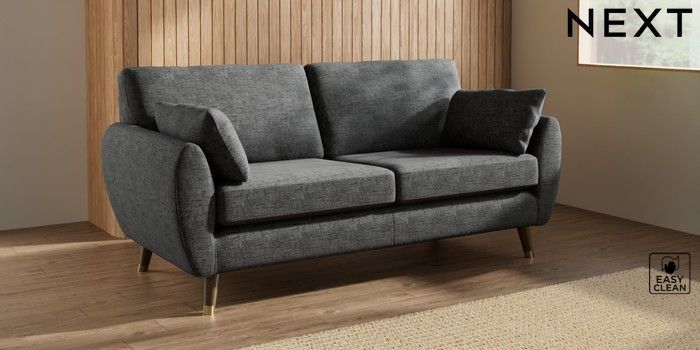 7.3.1 Buy Wilson 3 Seater Small Sofa Boucle Weave Easy Clean Charcoal Grey Low Retro Tapered Metal Cap - Mid from the Next UK online shop Click here to use our accessible website