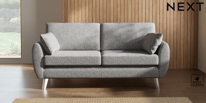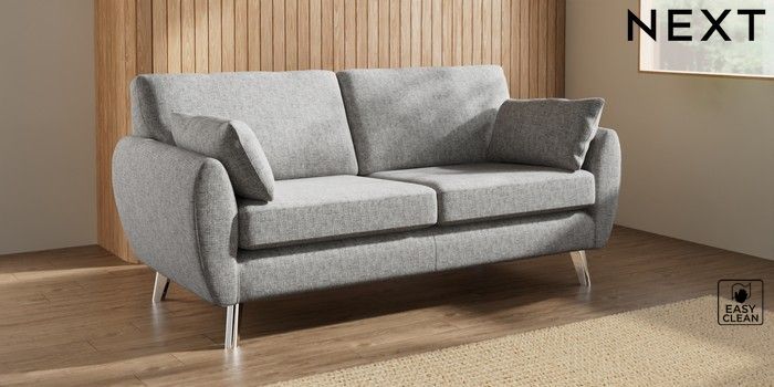 7.3.1 Buy Wilson 3 Seater Small Sofa Chunky Boucle Easy Clean Light Grey Metal Tapered - Chrome from the Next UK online shop
