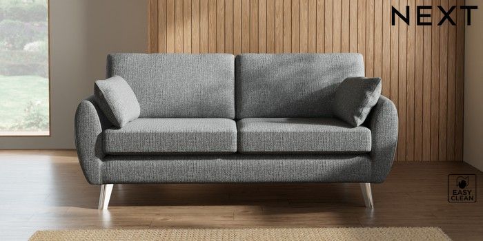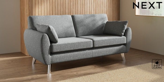 7.3.1 Buy Wilson 3 Seater Small Sofa Chunky Boucle Easy Clean Mid Grey Metal Tapered - Chrome from the Next UK online shop