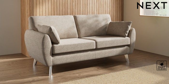7.3.1 Buy Wilson 3 Seater Small Sofa Chunky Boucle Easy Clean Mid Natural Metal Tapered - Chrome from the Next UK online shop