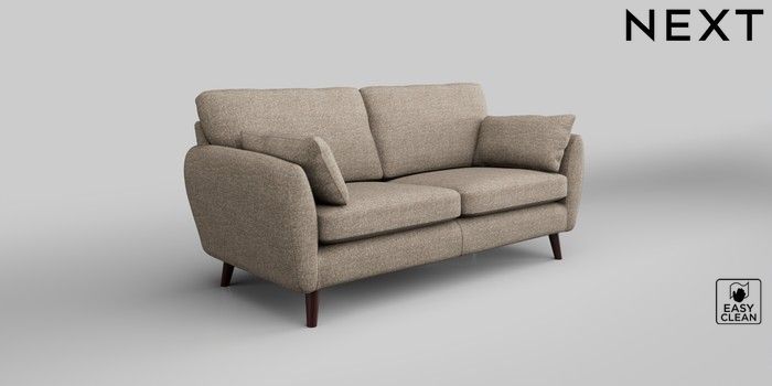 6.12.1 Buy Wilson 3 Seater Small Sofa Chunky Boucle Easy Clean Mid Natural Retro Tapered - Dark Brown from the Next UK online shop Click here to use our accessible website