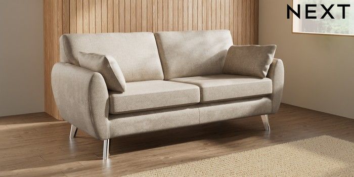 7.3.1 Buy Wilson 3 Seater Small Sofa Plush Chenille Light Natural Metal Tapered - Chrome from the Next UK online shop Click here to use our accessible website