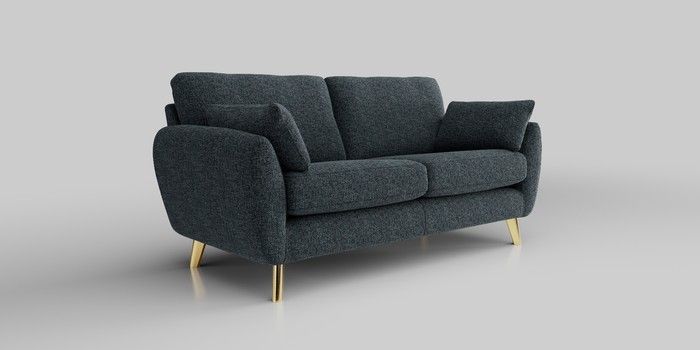 6.12.1 Buy Wilson 3 Seater Small Sofa Chunky Chenille Dark Navy Blue Metal Tapered - Gold from the Next UK online shop Click here to use our accessible website