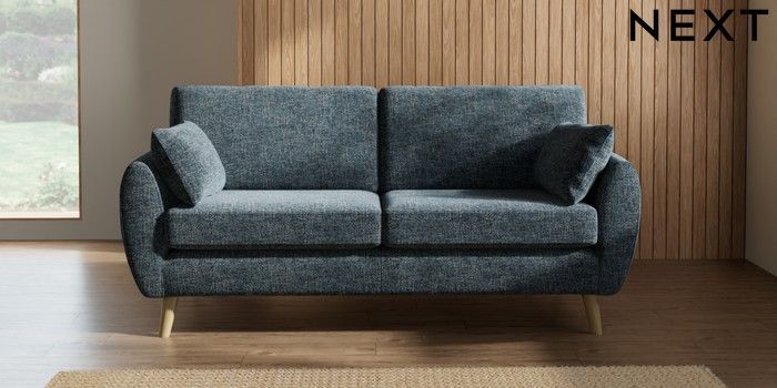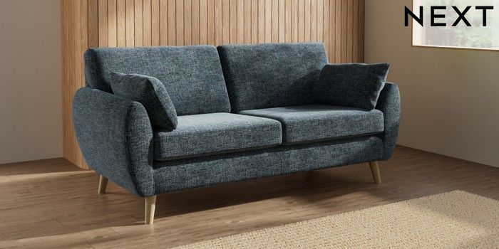 7.3.1 Buy Wilson 3 Seater Small Sofa Chunky Chenille Dark Navy Blue Retro Tapered - Light from the Next UK online shop