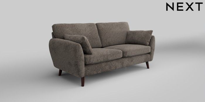 6.12.1 Buy Wilson 3 Seater Small Sofa Chunky Chenille Mink Brown Retro Tapered - Dark Brown from the Next UK online shop Click here to use our accessible website