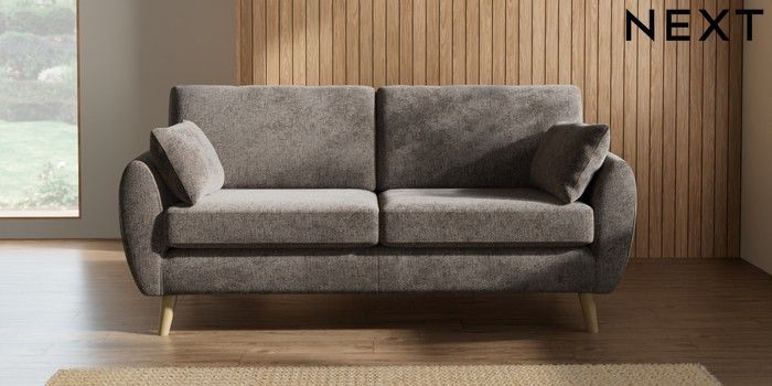 7.2.10 Buy Wilson 3 Seater Small Sofa Chunky Chenille Mink Brown Retro Tapered - Light from the Next UK online shop Click here to use our accessible website