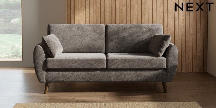 7.2.10 Buy Wilson 3 Seater Small Sofa Chunky Chenille Mink Brown Retro Tapered - Mid from the Next UK online shop Click here to use our accessible website
