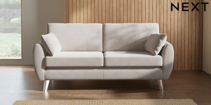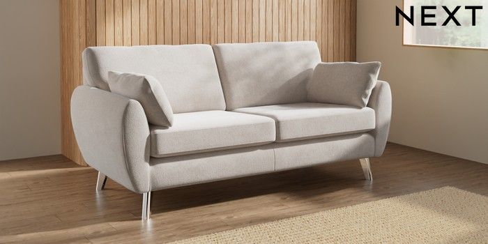 7.3.1 Buy Wilson 3 Seater Small Sofa Chunky Chenille Oyster Metal Tapered - Chrome from the Next UK online shop
