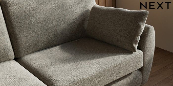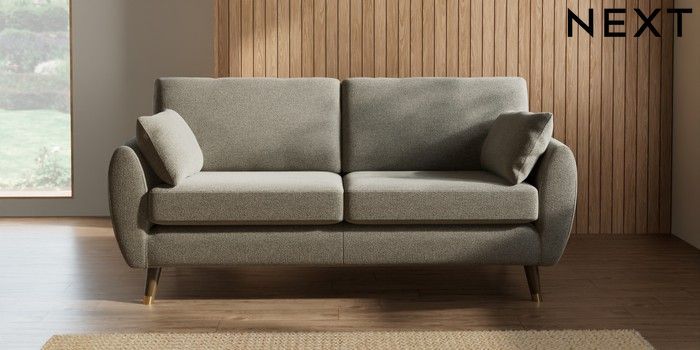 7.3.1 Buy Wilson 3 Seater Small Sofa Chunky Marl Light Olive Green Low Retro Tapered Metal Cap - Mid from the Next UK online shop Click here to use our accessible website