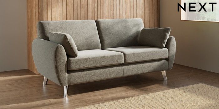 7.3.1 Buy Wilson 3 Seater Small Sofa Chunky Marl Light Olive Green Metal Tapered - Chrome from the Next UK online shop Click here to use our accessible website