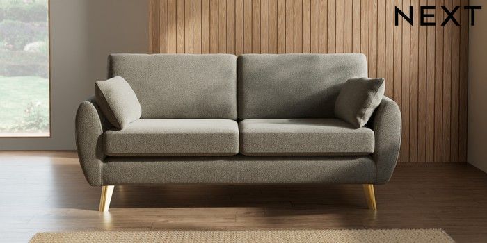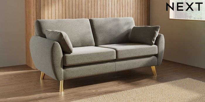 7.3.1 Buy Wilson 3 Seater Small Sofa Chunky Marl Light Olive Green Metal Tapered - Gold from the Next UK online shop Click here to use our accessible website
