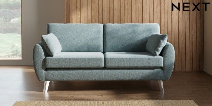 7.3.1 Buy Wilson 3 Seater Small Sofa Chunky Marl Mid Blue Metal Tapered - Chrome from the Next UK online shop Click here to use our accessible website