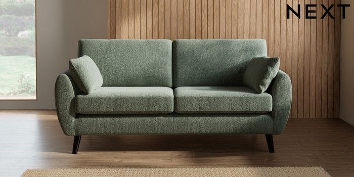 7.2.10 Buy Wilson 3 Seater Small Sofa Chunky Texture Mid Forest Green Retro Tapered - Dark from the Next UK online shop Click here to use our accessible website
