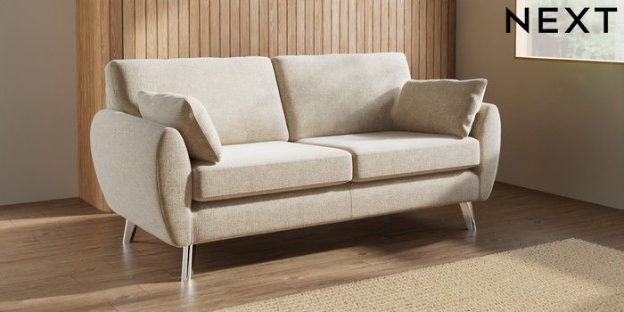 7.3.1 Buy Wilson 3 Seater Small Sofa Chunky Weave Cream Metal Tapered - Chrome from the Next UK online shop