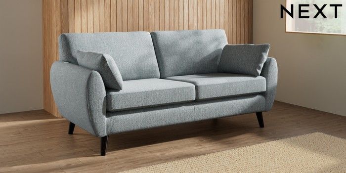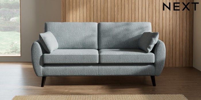 7.3.1 Buy Wilson 3 Seater Small Sofa Chunky Weave Mid Blue Retro Tapered - Dark from the Next UK online shop