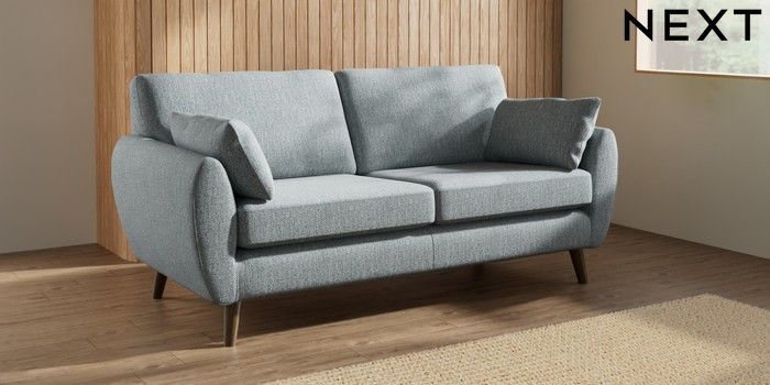 7.3.1 Buy Wilson 3 Seater Small Sofa Chunky Weave Mid Blue Retro Tapered - Mid from the Next UK online shop