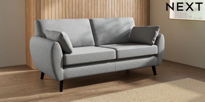 7.3.1 Buy Wilson 3 Seater Small Sofa Chunky Weave Mid Grey Retro Tapered - Dark from the Next UK online shop
