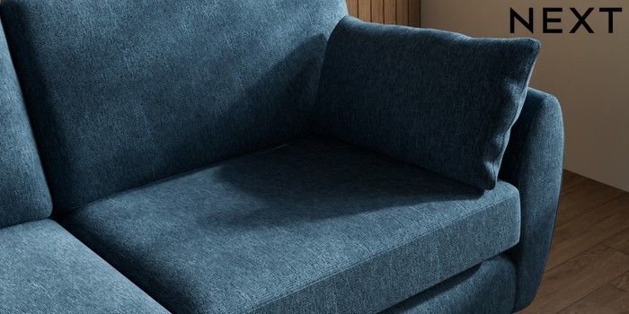 7.3.1 Buy Wilson 3 Seater Small Sofa Cotswold Chenille Dark Blue Low Retro Tapered Metal Cap - Mid from the Next UK online shop Click here to use our accessible website