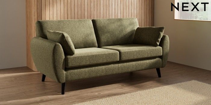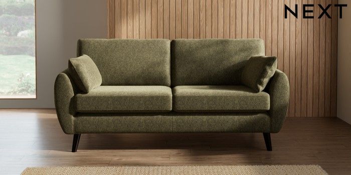 7.3.1 Buy Wilson 3 Seater Small Sofa Cotswold Chenille Dark Green Retro Tapered - Dark from the Next UK online shop