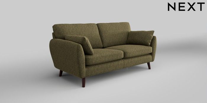 6.12.1 Buy Wilson 3 Seater Small Sofa Cotswold Chenille Dark Green Retro Tapered - Dark Brown from the Next UK online shop Click here to use our accessible website