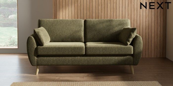 7.3.1 Buy Wilson 3 Seater Small Sofa Cotswold Chenille Dark Green Retro Tapered - Light from the Next UK online shop