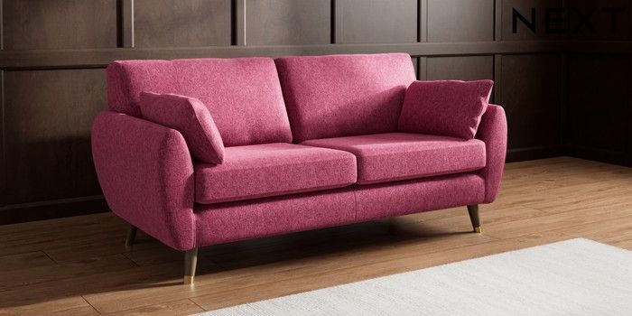 7.3.1 Buy Wilson 3 Seater Small Sofa Cotswold Chenille Dark Raspberry Pink Low Retro Tapered Metal Cap - Mid from the Next UK online shop Click here to use our accessible website