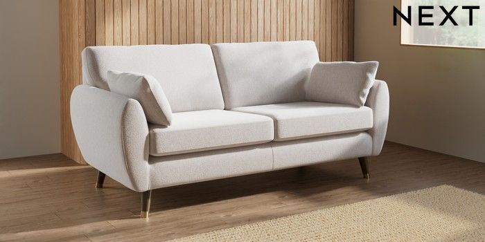 7.3.1 Buy Wilson 3 Seater Small Sofa Cotswold Chenille Oyster Low Retro Tapered Metal Cap - Mid from the Next UK online shop