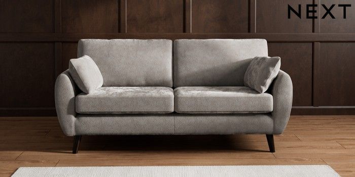 7.3.1 Buy Wilson 3 Seater Small Sofa Distressed Velour French Grey Retro Tapered - Dark from the Next UK online shop