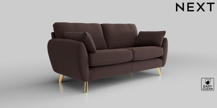 6.12.1 Buy Wilson 3 Seater Small Sofa Fine Chenille Easy Clean Chocolate Brown Metal Tapered - Gold from the Next UK online shop Click here to use our accessible website