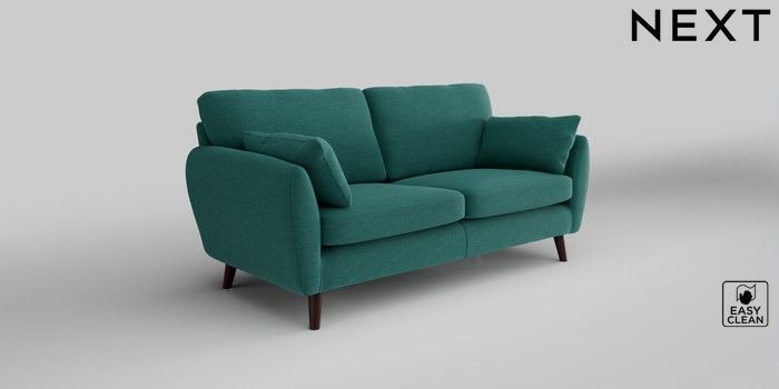 6.12.1 Buy Wilson 3 Seater Small Sofa Fine Chenille Easy Clean Dark Juniper Green Retro Tapered - Dark Brown from the Next UK online shop Click here to use our accessible website