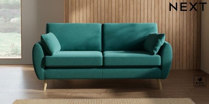 7.2.10 Buy Wilson 3 Seater Small Sofa Fine Chenille Easy Clean Dark Juniper Green Retro Tapered - Light from the Next UK online shop Click here to use our accessible website