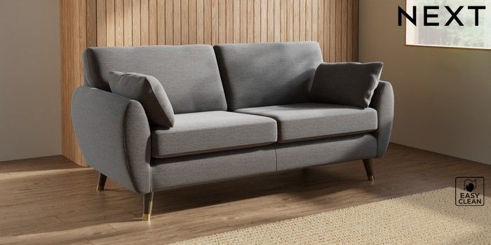 7.3.1 Buy Wilson 3 Seater Small Sofa Fine Chenille Easy Clean Dark Smoke Grey Low Retro Tapered Metal Cap - Mid from the Next UK online shop