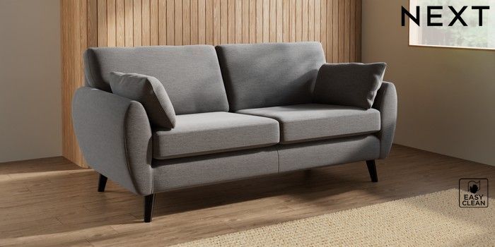 7.3.1 Buy Wilson 3 Seater Small Sofa Fine Chenille Easy Clean Dark Smoke Grey Retro Tapered - Dark from the Next UK online shop