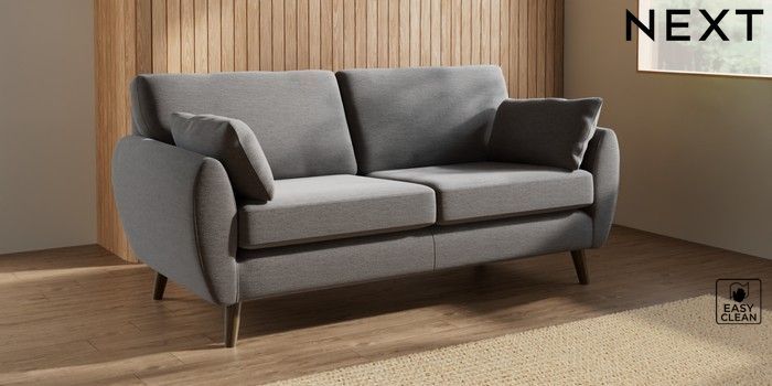 7.3.1 Buy Wilson 3 Seater Small Sofa Fine Chenille Easy Clean Dark Smoke Grey Retro Tapered - Mid from the Next UK online shop
