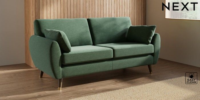 7.3.1 Buy Wilson 3 Seater Small Sofa Fine Chenille Easy Clean Mid Khaki Green Low Retro Tapered Metal Cap - Mid from the Next UK online shop