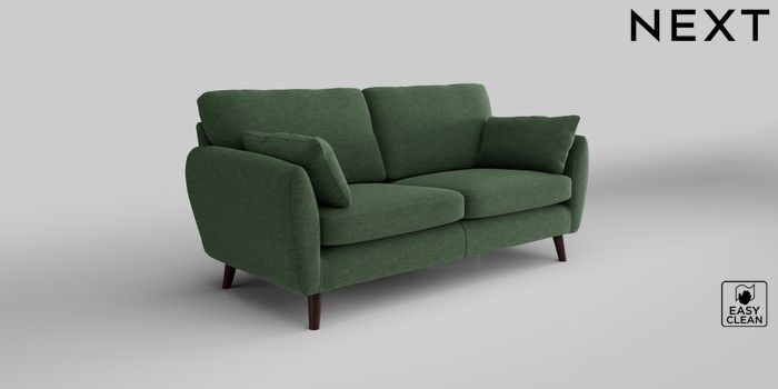 6.12.1 Buy Wilson 3 Seater Small Sofa Fine Chenille Easy Clean Mid Khaki Green Retro Tapered - Dark Brown from the Next UK online shop Click here to use our accessible website