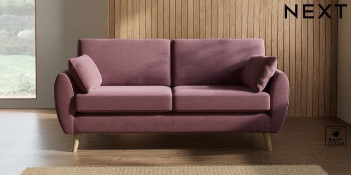 7.3.1 Buy Wilson 3 Seater Small Sofa Fine Chenille Easy Clean Mid Mulberry Purple Retro Tapered - Light from the Next UK online shop