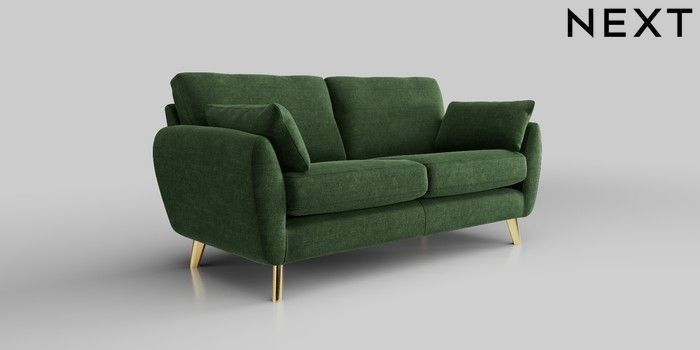 6.12.1 Buy Wilson 3 Seater Small Sofa Luxe Chenille Dark Green Metal Tapered - Gold from the Next UK online shop Click here to use our accessible website