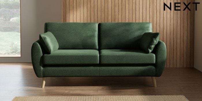 7.3.1 Buy Wilson 3 Seater Small Sofa Luxe Chenille Dark Green Retro Tapered - Light from the Next UK online shop