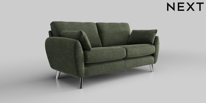 6.12.1 Buy Wilson 3 Seater Small Sofa Luxe Chenille Mid Green Metal Tapered - Chrome from the Next UK online shop Click here to use our accessible website