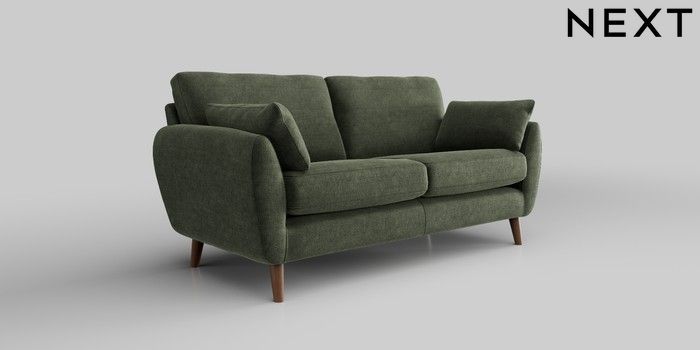 6.12.1 Buy Wilson 3 Seater Small Sofa Luxe Chenille Mid Green Retro Tapered - Mid from the Next UK online shop Click here to use our accessible website