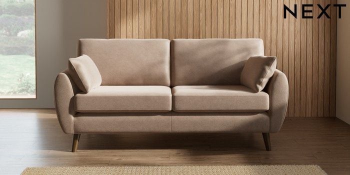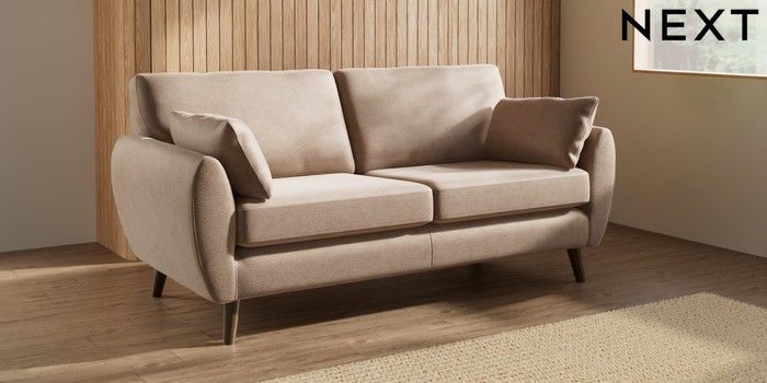 7.3.1 Buy Wilson 3 Seater Small Sofa Luxe Chenille Mid Natural Retro Tapered - Mid from the Next UK online shop