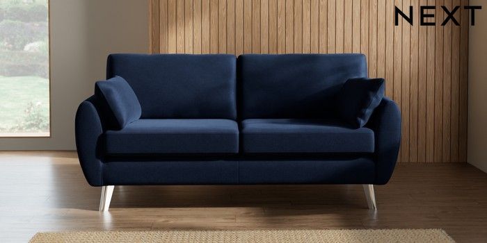 7.3.1 Buy Wilson 3 Seater Small Sofa Luxe Chenille Navy Blue Metal Tapered - Chrome from the Next UK online shop Click here to use our accessible website
